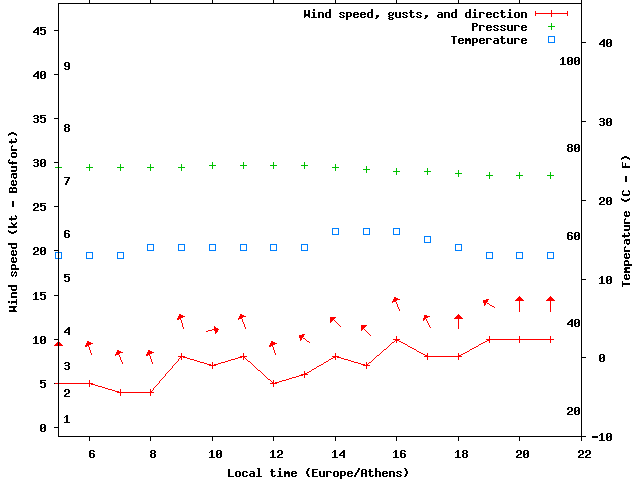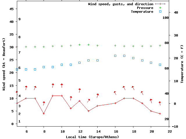 Dawn after 5:00; dusk before 22:00 local time (Europe/Athens).