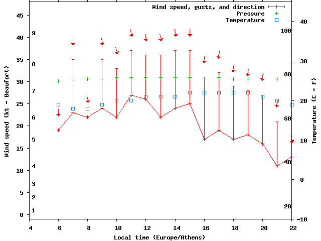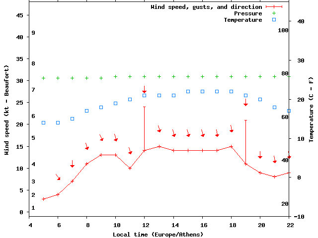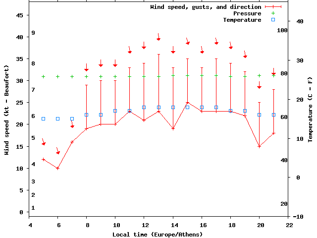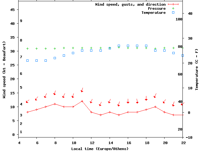 Dawn after 4:00; dusk before 22:00 local time (Europe/Athens).