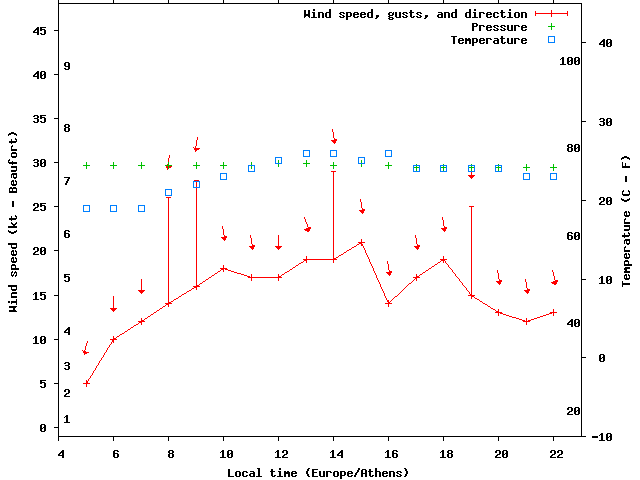 Dawn after 4:00; dusk before 23:00 local time (Europe/Athens).