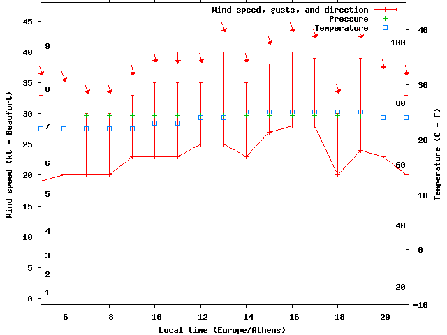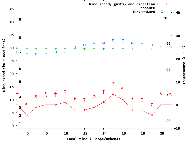 Dawn after 5:00; dusk before 21:00 local time (Europe/Athens).