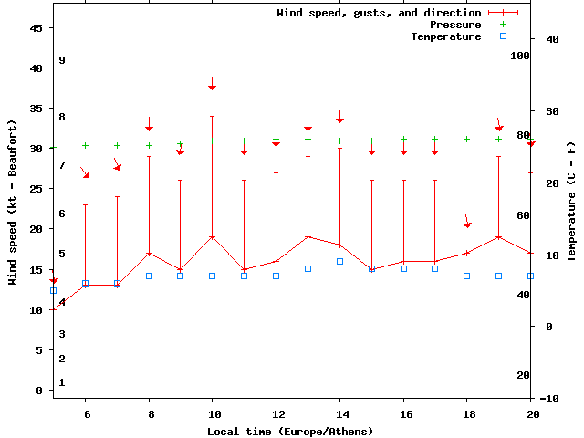 Dawn after 5:00; dusk before 20:00 local time (Europe/Athens).