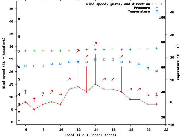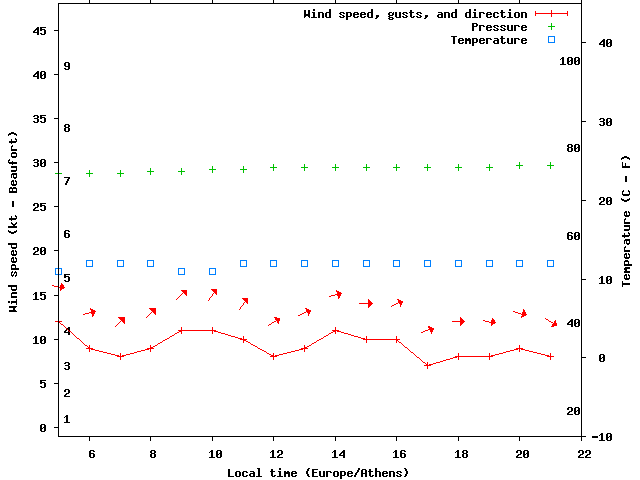 Dawn after 5:00; dusk before 22:00 local time (Europe/Athens).