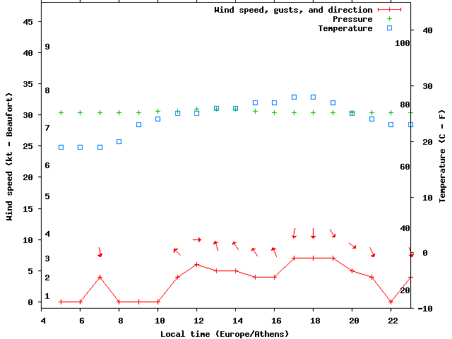 Dawn after 4:00; dusk before 23:00 local time (Europe/Athens).