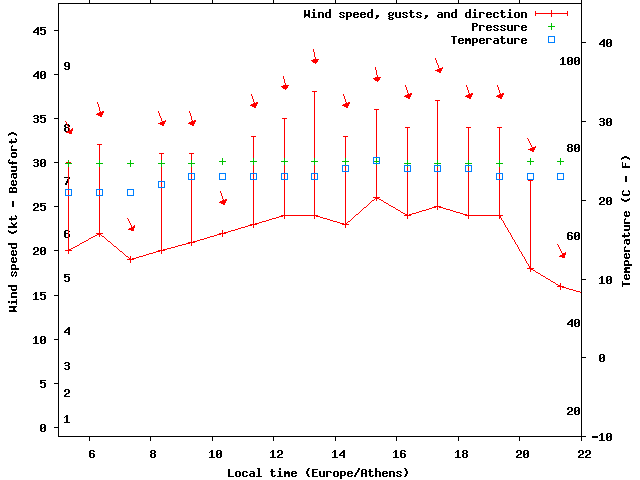 Dawn after 5:00; dusk before 22:00 local time (Europe/Athens).