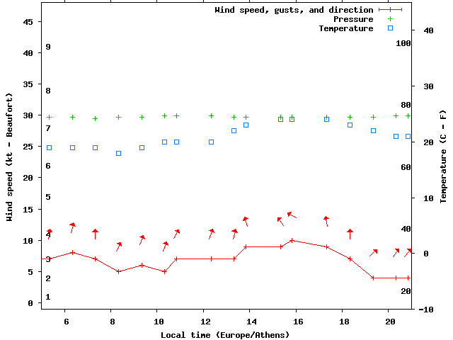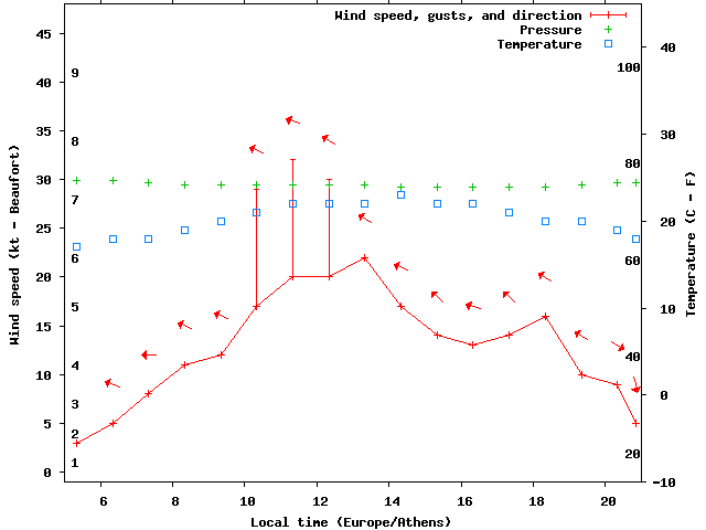 Dawn after 5:00; dusk before 21:00 local time (Europe/Athens).