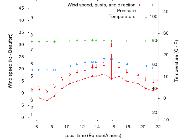 Dawn after 5:00; dusk before 22:00 local time (Europe/Athens).