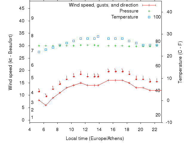 Dawn after 4:00; dusk before 23:00 local time (Europe/Athens).
