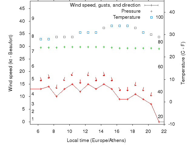 Dawn after 5:00; dusk before 22:00 local time (Europe/Athens).