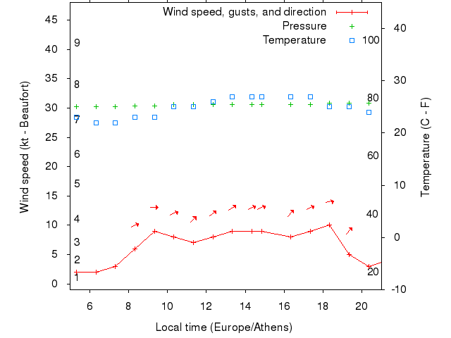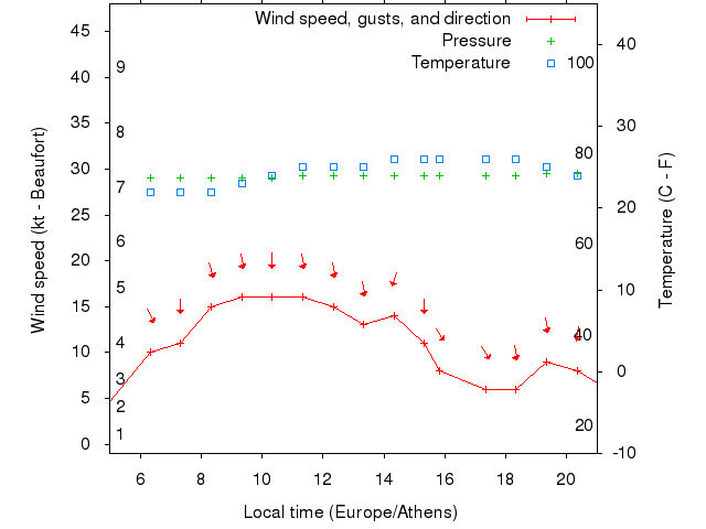 Dawn after 5:00; dusk before 21:00 local time (Europe/Athens).