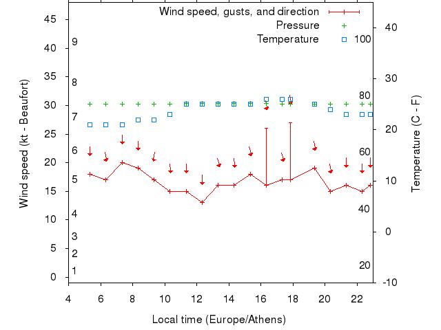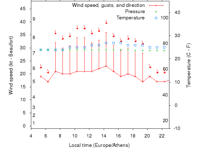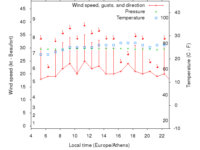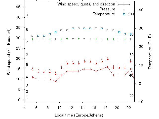 Dawn after 4:00; dusk before 23:00 local time (Europe/Athens).