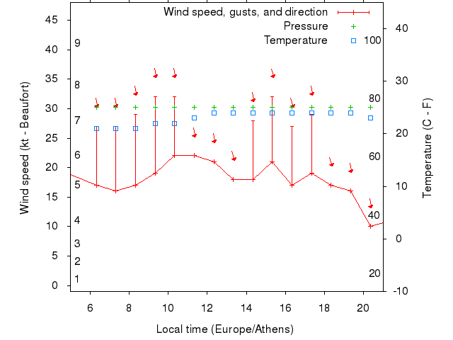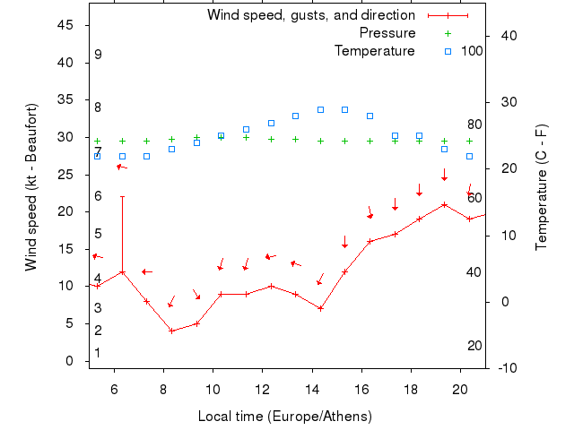Dawn after 5:00; dusk before 21:00 local time (Europe/Athens).