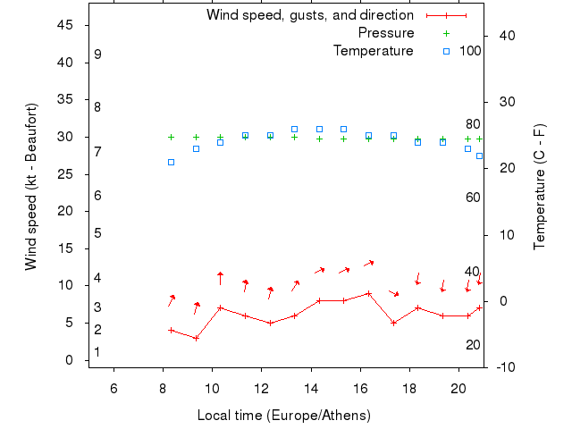 Dawn after 5:00; dusk before 21:00 local time (Europe/Athens).