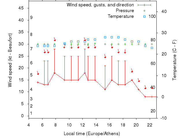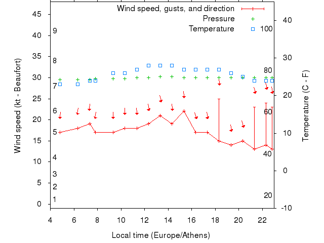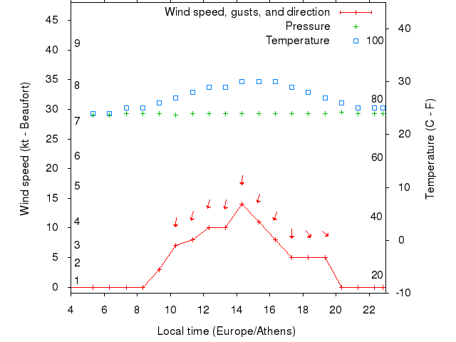 Dawn after 4:00; dusk before 23:00 local time (Europe/Athens).
