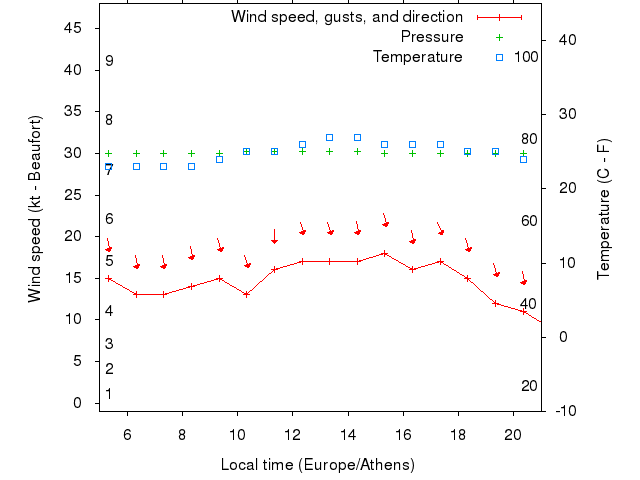 Dawn after 5:00; dusk before 21:00 local time (Europe/Athens).