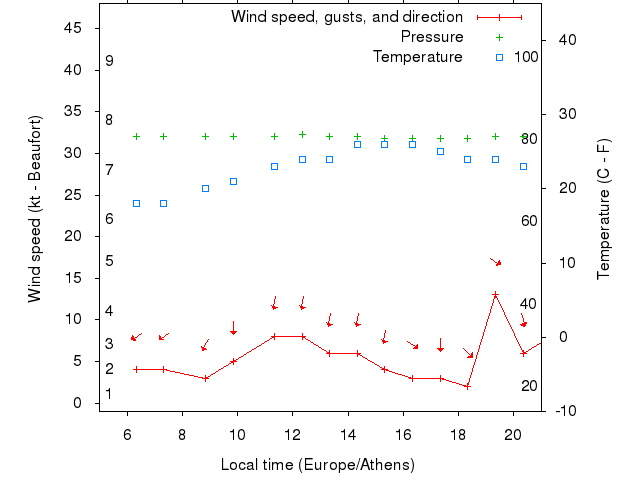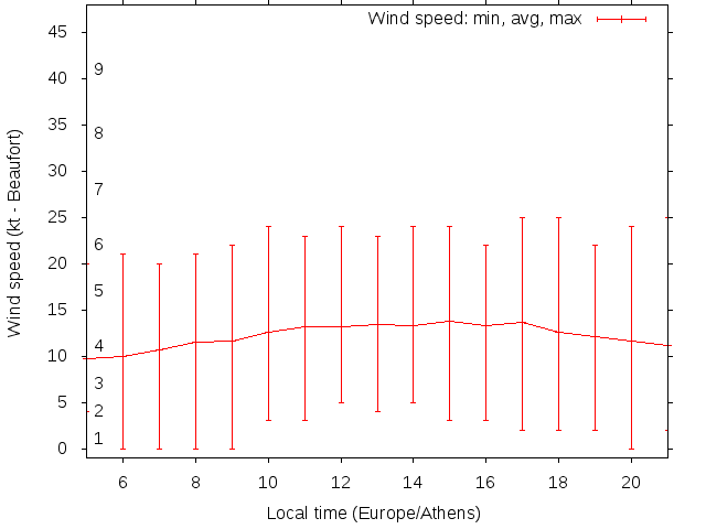 Dawn after 5:00; dusk before 21:00 local time (Europe/Athens).