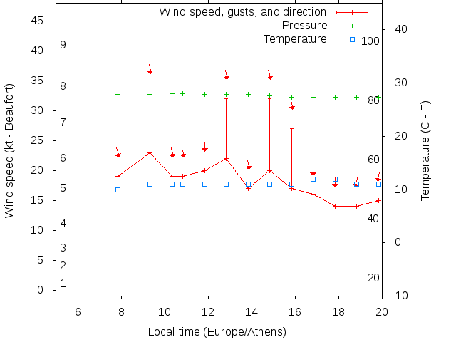 Dawn after 5:00; dusk before 20:00 local time (Europe/Athens).
