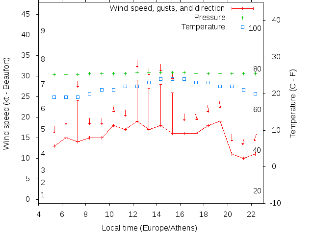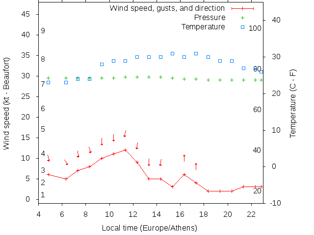 Dawn after 4:00; dusk before 23:00 local time (Europe/Athens).