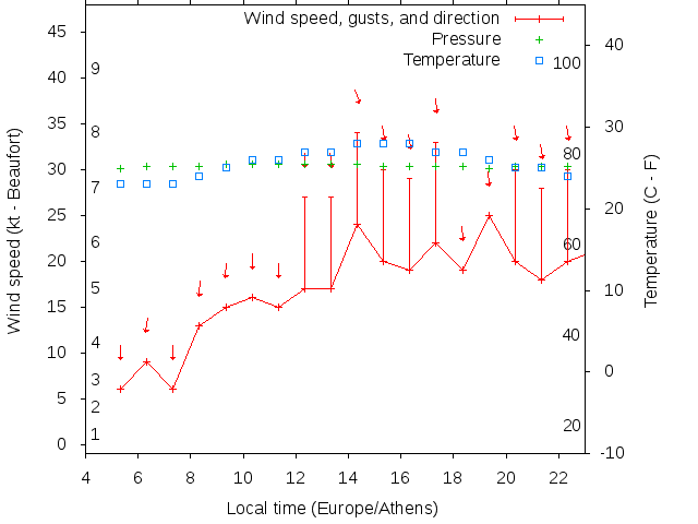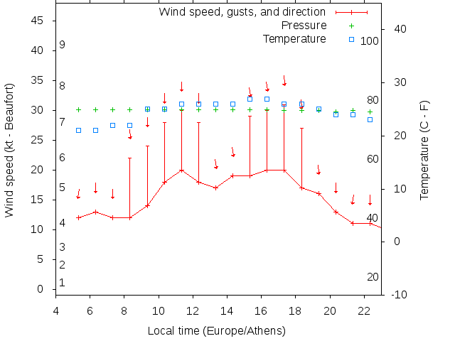 Dawn after 4:00; dusk before 23:00 local time (Europe/Athens).