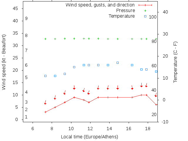 Dawn after 5:00; dusk before 19:00 local time (Europe/Athens).
