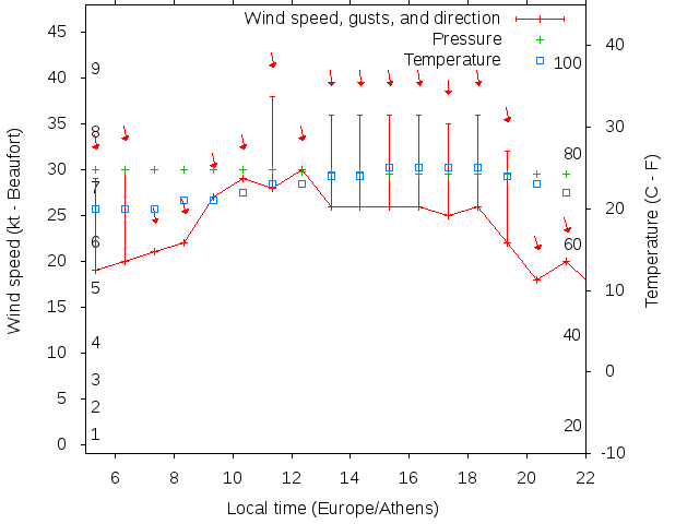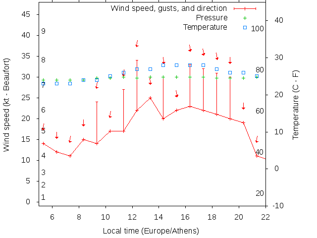 Dawn after 5:00; dusk before 22:00 local time (Europe/Athens).
