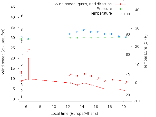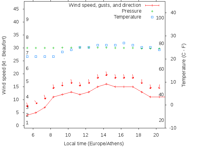 Dawn after 5:00; dusk before 21:00 local time (Europe/Athens).