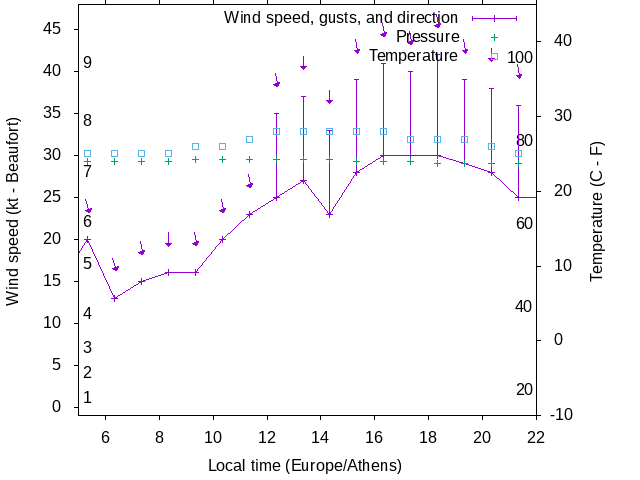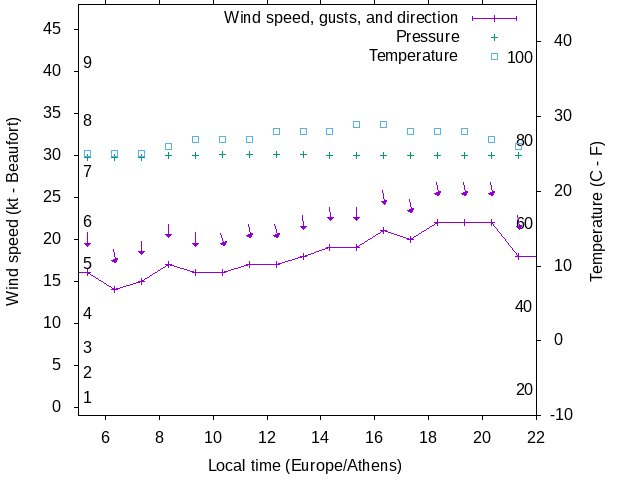 Dawn after 5:00; dusk before 22:00 local time (Europe/Athens).