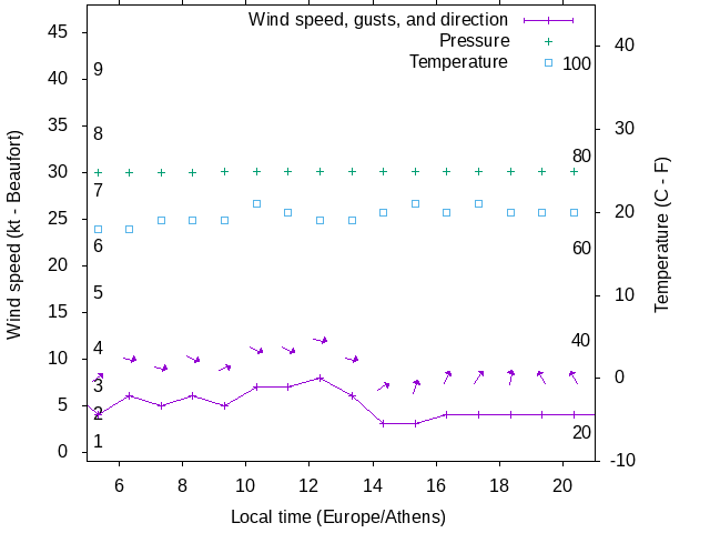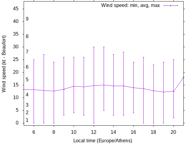 Dawn after 5:00; dusk before 21:00 local time (Europe/Athens).