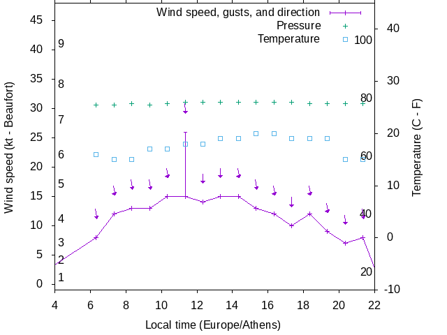 Dawn after 4:00; dusk before 22:00 local time (Europe/Athens).