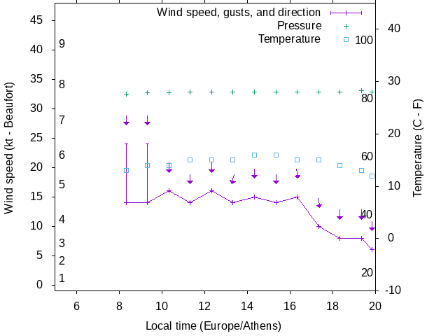 Dawn after 5:00; dusk before 20:00 local time (Europe/Athens).