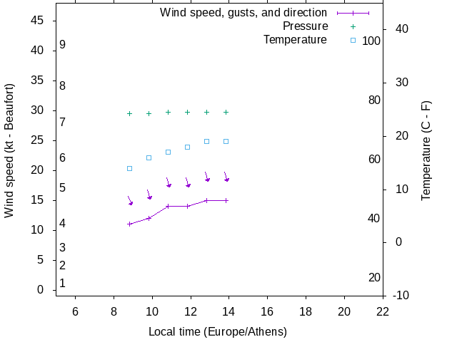 Dawn after 5:00; dusk before 22:00 local time (Europe/Athens).