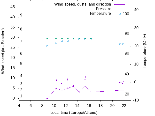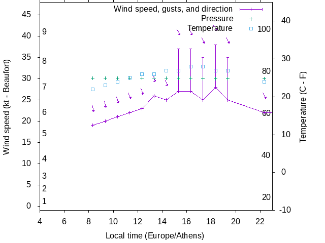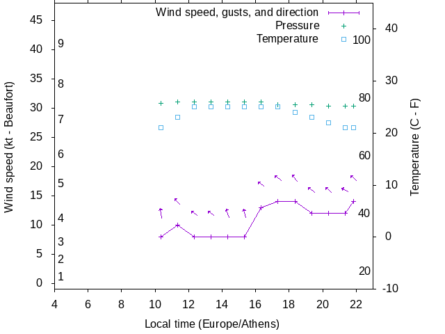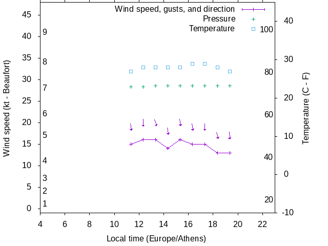 Dawn after 4:00; dusk before 23:00 local time (Europe/Athens).