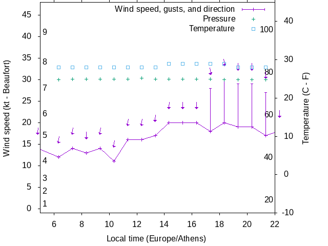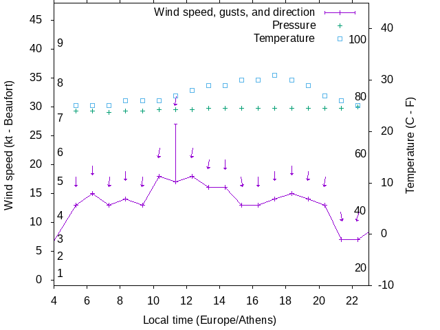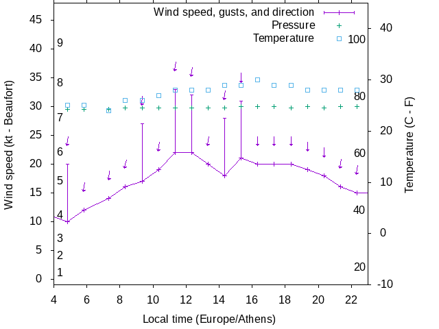 Dawn after 4:00; dusk before 23:00 local time (Europe/Athens).