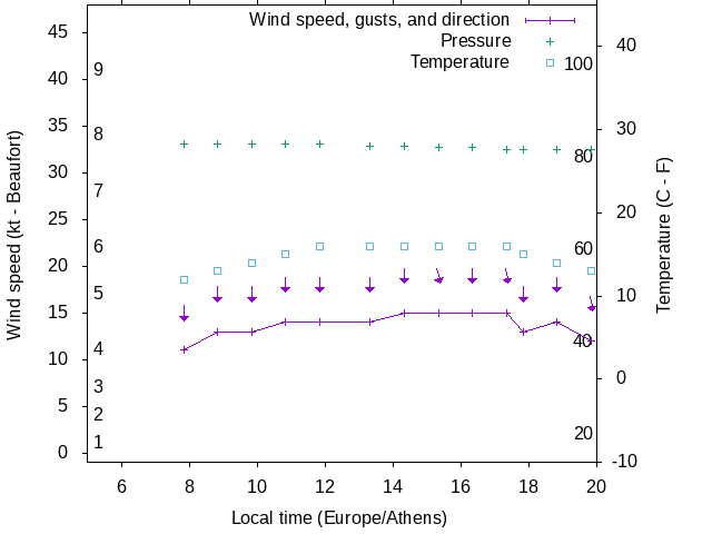 Dawn after 5:00; dusk before 20:00 local time (Europe/Athens).