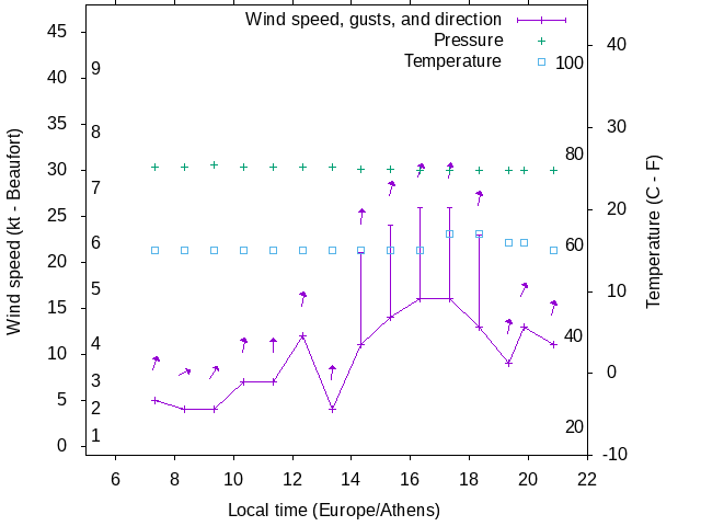 Dawn after 5:00; dusk before 22:00 local time (Europe/Athens).