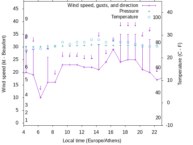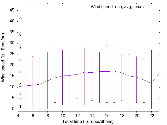 Dawn after 4:00; dusk before 23:00 local time (Europe/Athens).