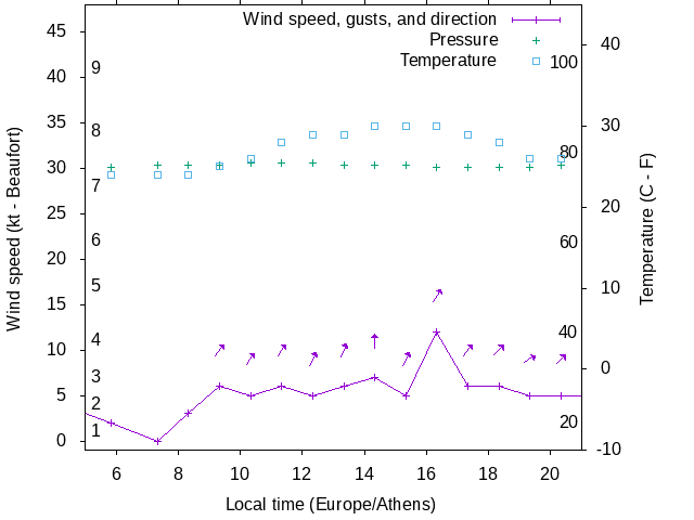 Dawn after 5:00; dusk before 21:00 local time (Europe/Athens).