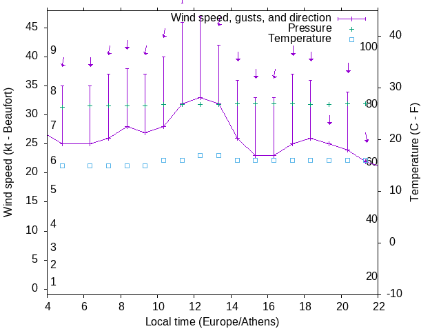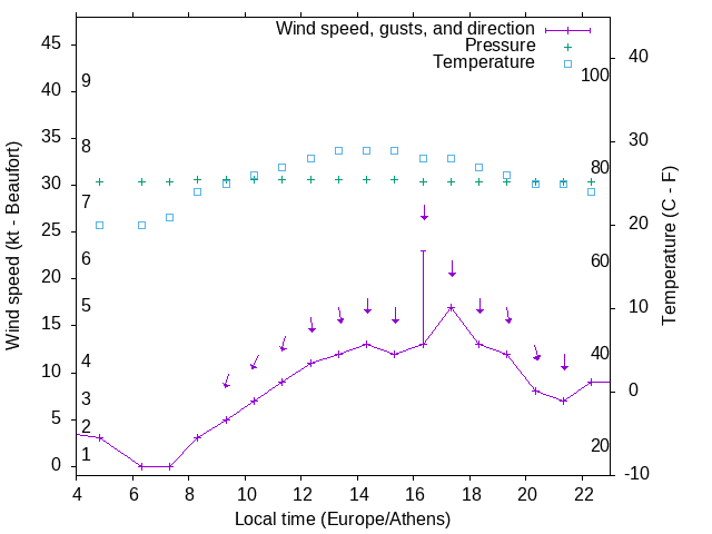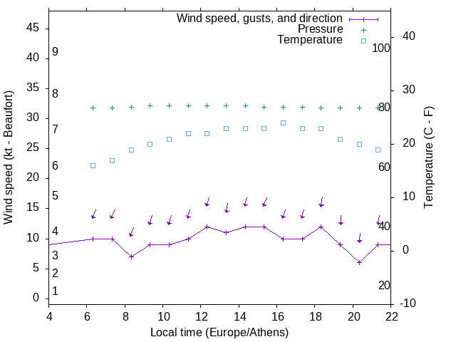 Dawn after 4:00; dusk before 22:00 local time (Europe/Athens).