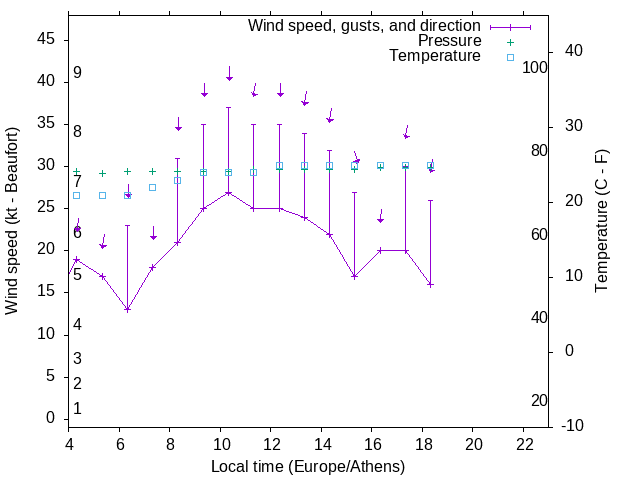 Dawn after 4:00; dusk before 23:00 local time (Europe/Athens).