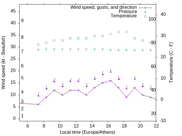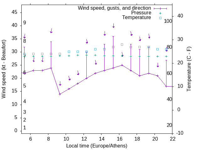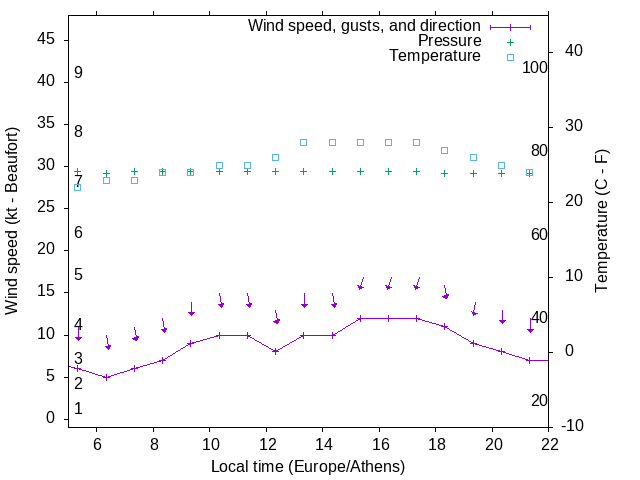 Dawn after 5:00; dusk before 22:00 local time (Europe/Athens).