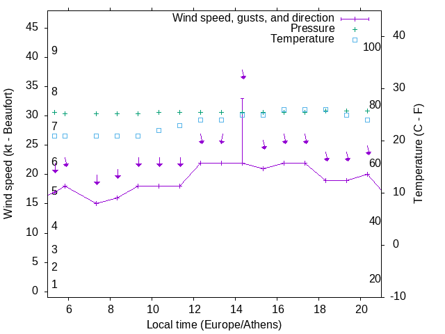 Dawn after 5:00; dusk before 21:00 local time (Europe/Athens).