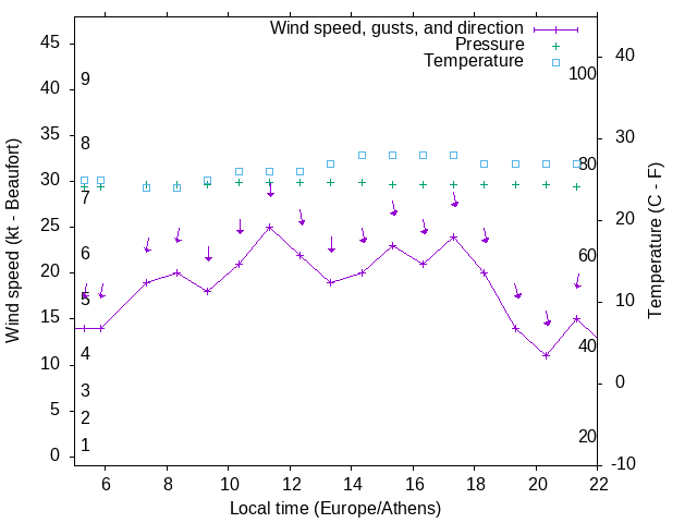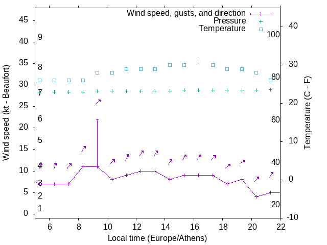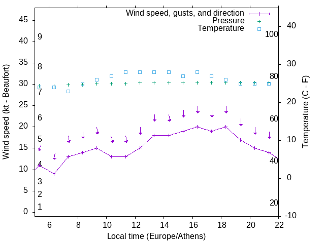 Dawn after 5:00; dusk before 22:00 local time (Europe/Athens).