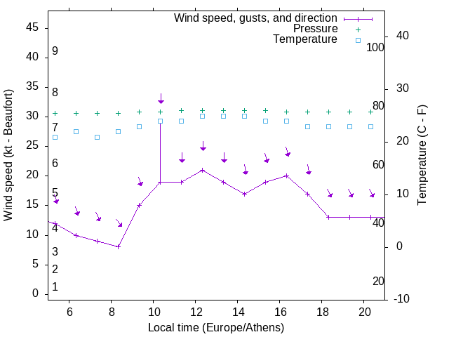Dawn after 5:00; dusk before 21:00 local time (Europe/Athens).