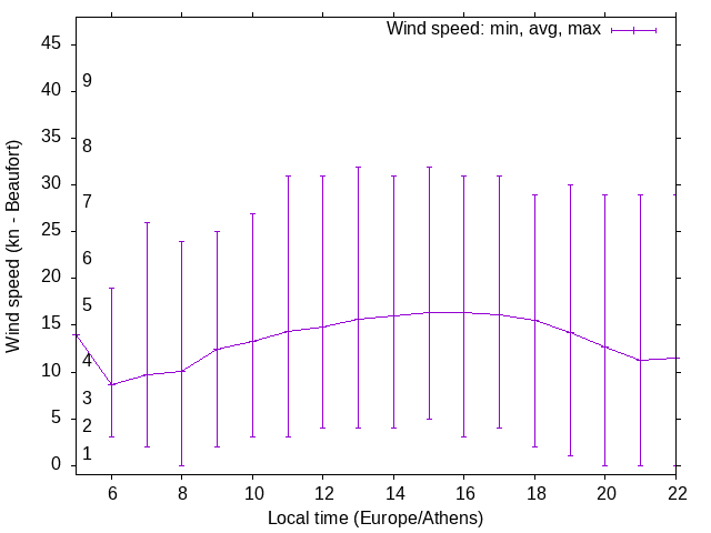 Dawn after 5:00; dusk before 22:00 local time (Europe/Athens).