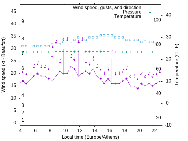 Dawn after 4:00; dusk before 23:00 local time (Europe/Athens).