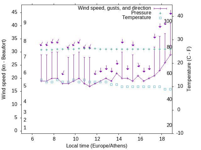 Dawn after 5:00; dusk before 19:00 local time (Europe/Athens).
