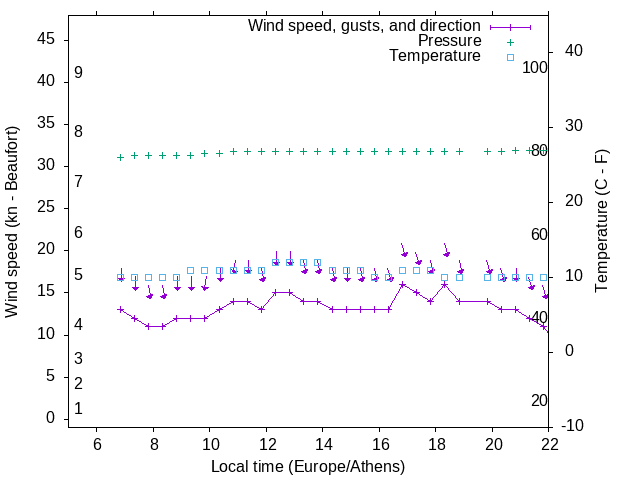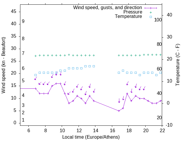 Dawn after 5:00; dusk before 22:00 local time (Europe/Athens).