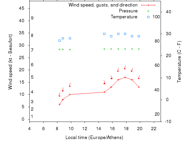 Dawn after 4:00; dusk before 23:00 local time (Europe/Athens).