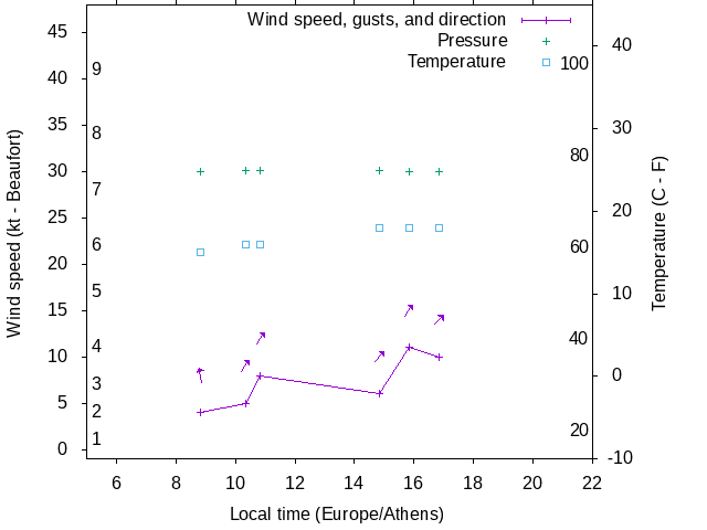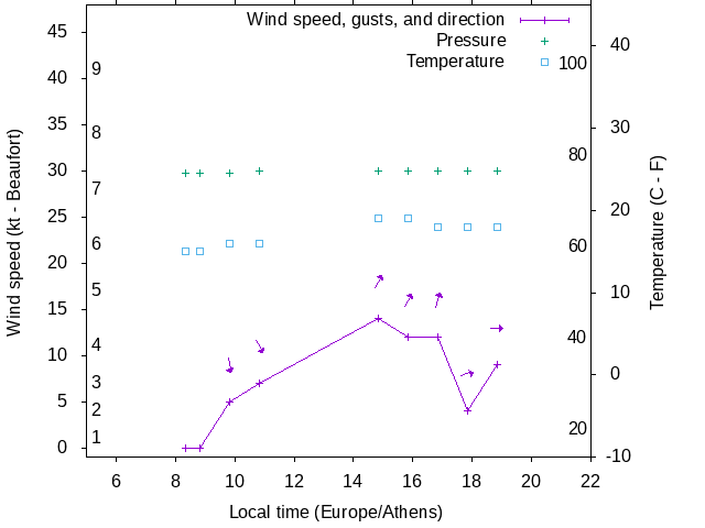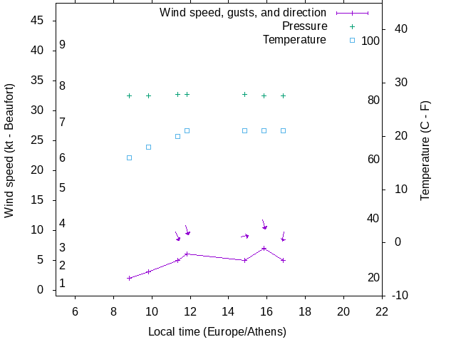 Dawn after 5:00; dusk before 22:00 local time (Europe/Athens).