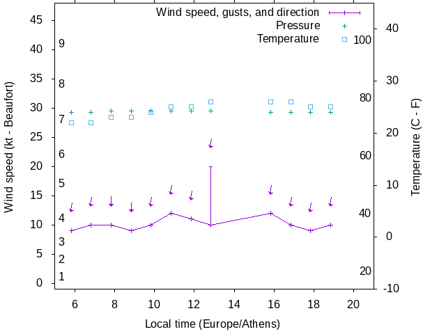Dawn after 5:00; dusk before 21:00 local time (Europe/Athens).