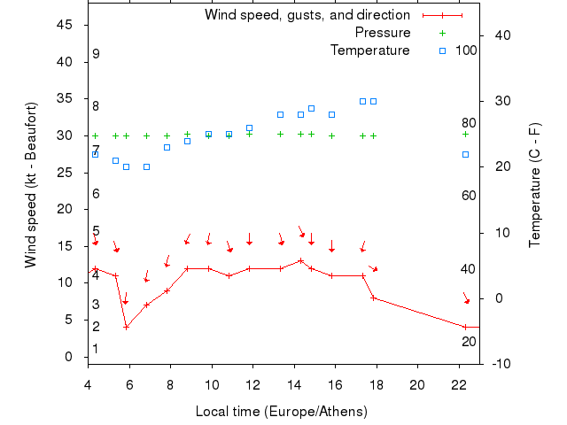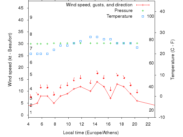 Dawn after 4:00; dusk before 23:00 local time (Europe/Athens).